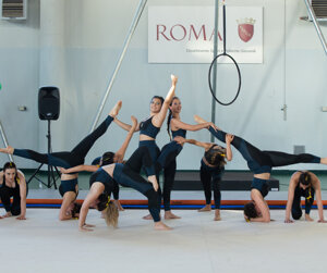 Esibizione allievi ed insegnanti del corso di acrobatica aerea della Roma70 ginnastica