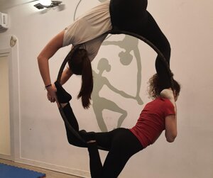 Ciascun allievo attraverso l’apprendimento di nuove figure e tecniche sarà in grado di eseguire figure sospesi in aria con l’uso di tessuti e del cerchio.