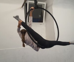 Si effettuano lezioni private su richiesta di acrobatica aerea con tessuti e cerchio da concordare per orari e numero di lezioni.